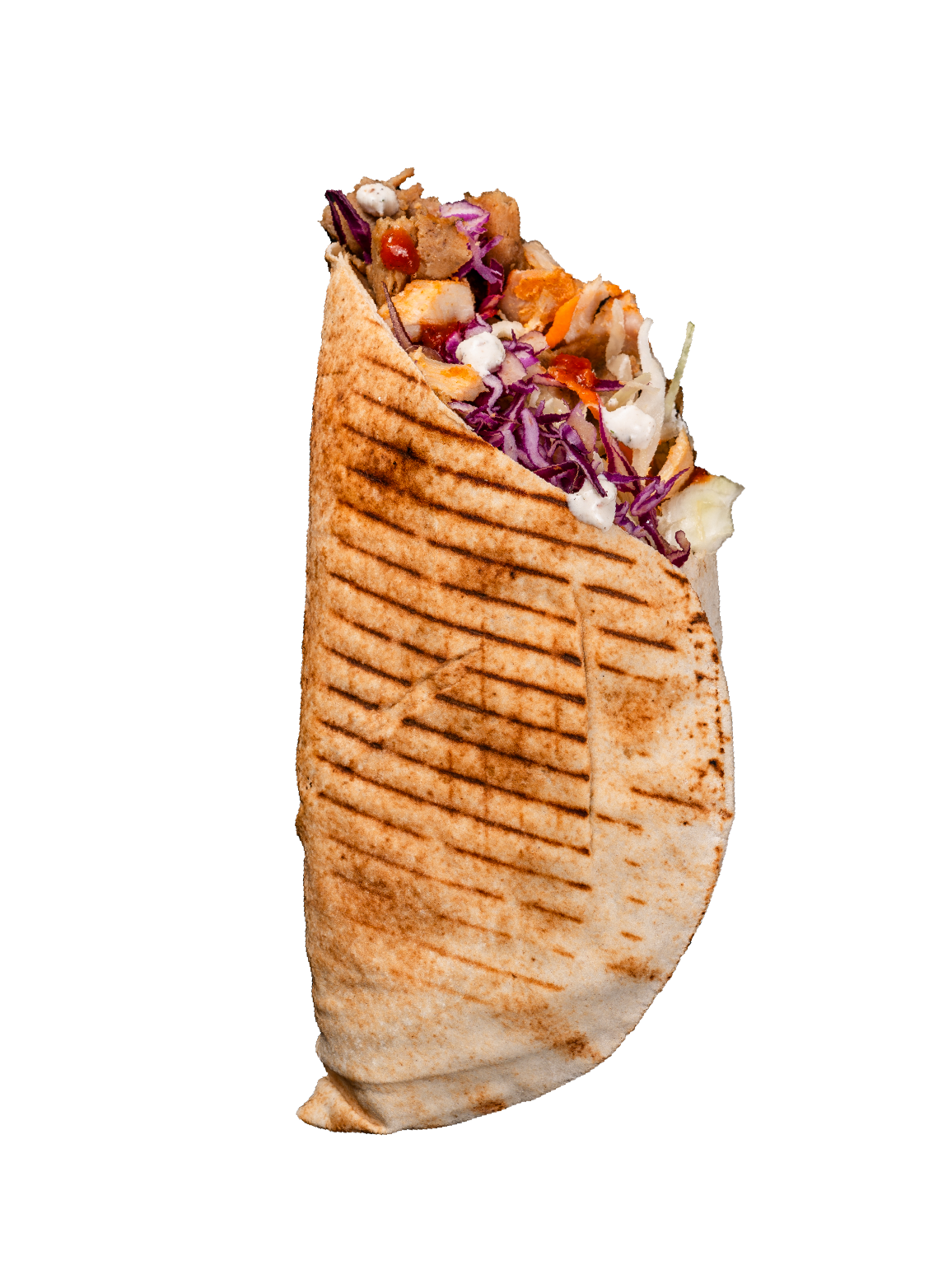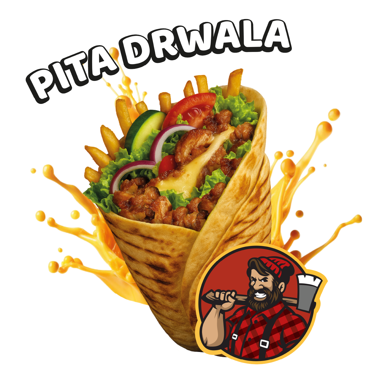 Pita 65 g + 100 g mięsa +ser panierowany 100 g +frytki 50 g + sałatka + warzywa + sos BBQ
