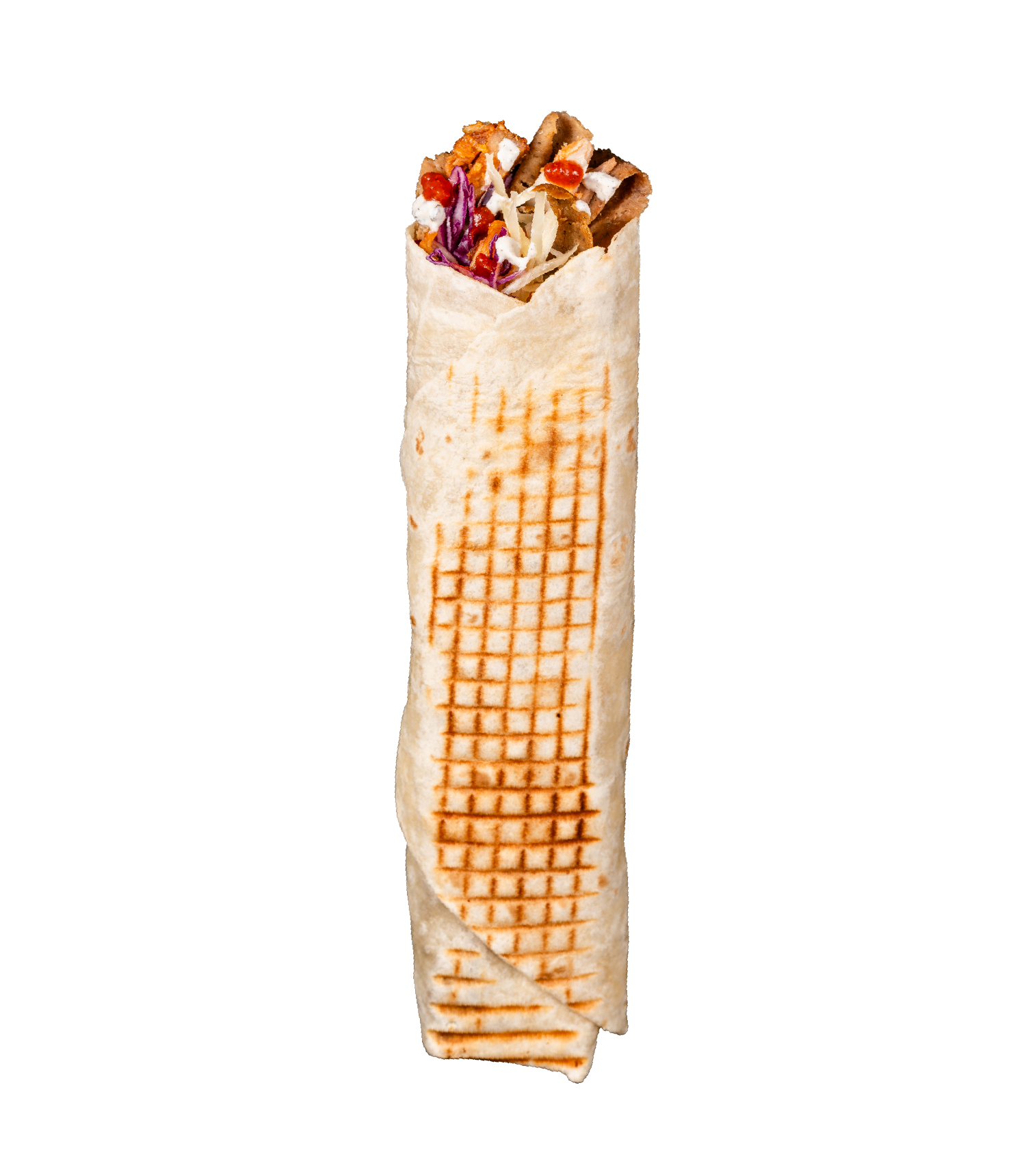 tortilla 35 cm x2 + mięso 210 g + warzywa + surówki + sos