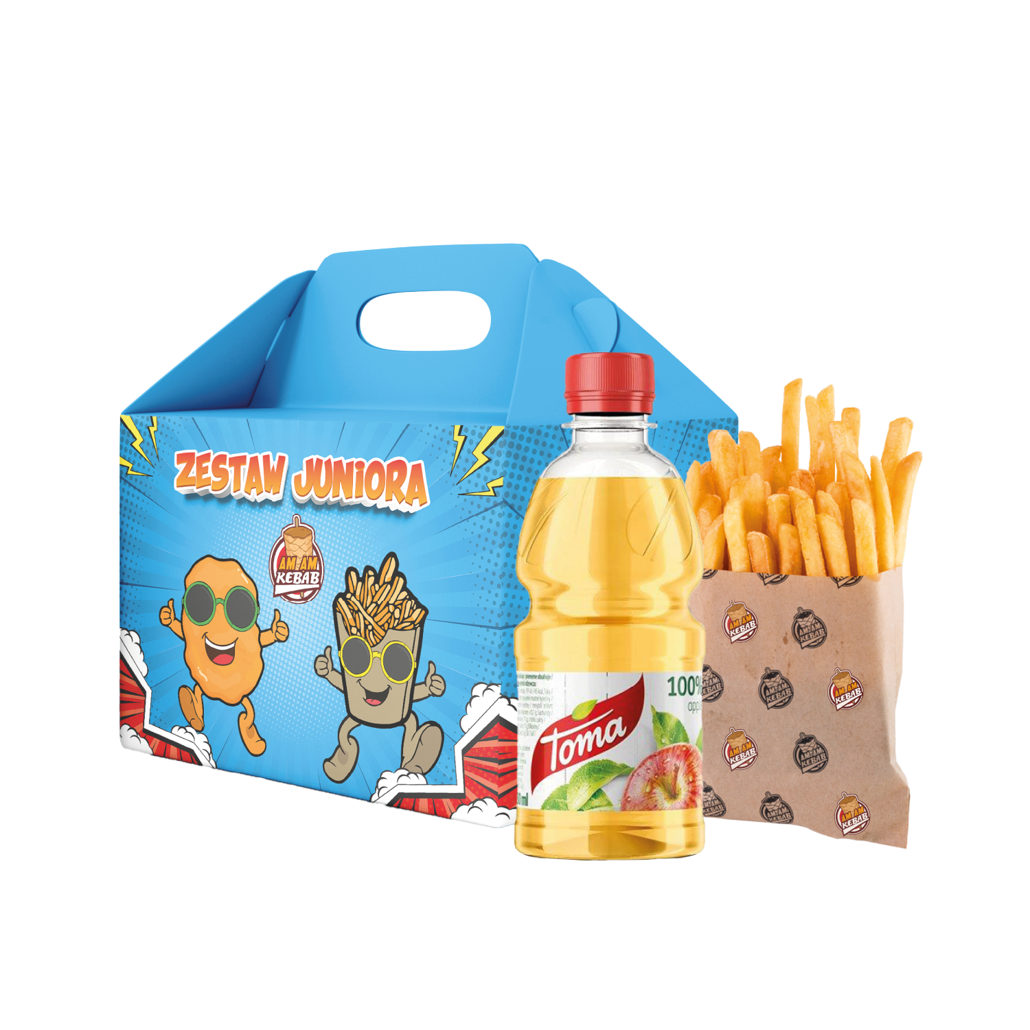 stripsy 2 szt. + frytki 120 g + sok Toma + zabawka
